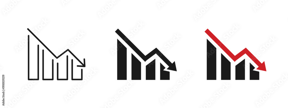 >Plakaty>Wybrane motywy - zobacz więcej !>Wodospad>Falling bar chart icon showing business decline and negative trend. Analytics and statistics illustration for finance reports, market loss, revenue decrease, risk assessment, performance analysis.