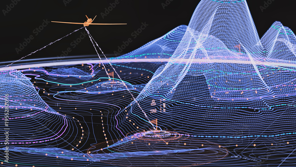 Plakat - Satellite remote sensing visualization, terrain mesh, geospatial data and earth monitoring..