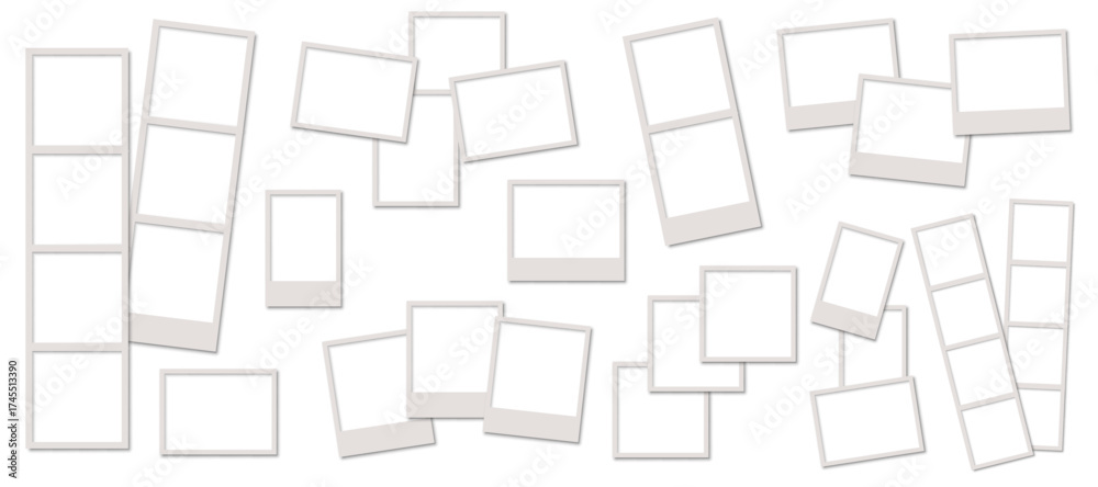 Plakat - Empty photo frame set, blank photo booth strip template, many different photo frames.