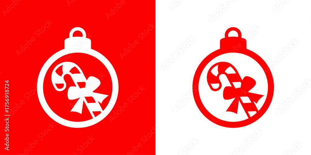 Plakat - Logo candy cane de navidad. Silueta de bola de navidad con bastón de caramelo con lazo de regalo para tarjetas y felicitaciones.