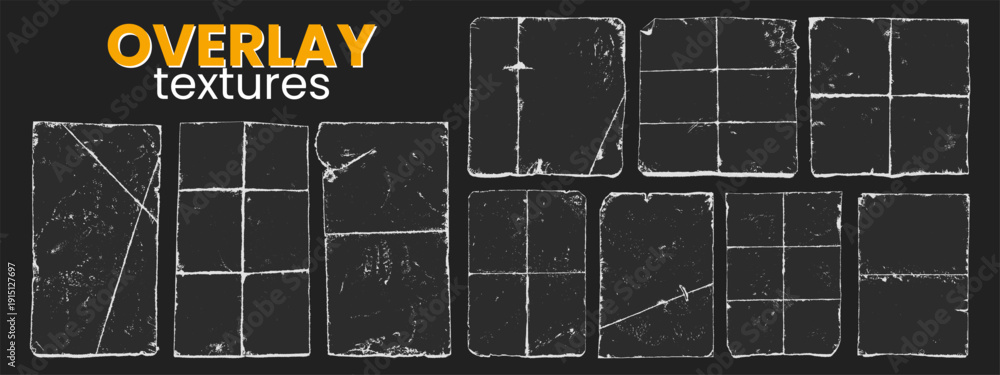 Plakat - Wrinkled paper mockups featuring vinyl paper overlay. Distressed blank sheets with visible folds. Vintage textured overlays for banners and backgrounds..