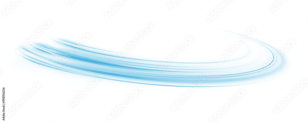 Plakat - Neon laser blue speed line move across city highway road. Light wave forms motion, futuristic energy trail, guiding traffic flow with glowing direction. PNG vector. Strong wind created whirlwind..