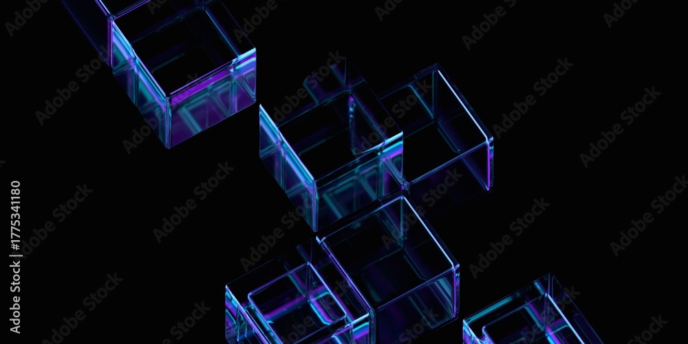 Plakat - Abstract glass cubes on a black background, 3d render.