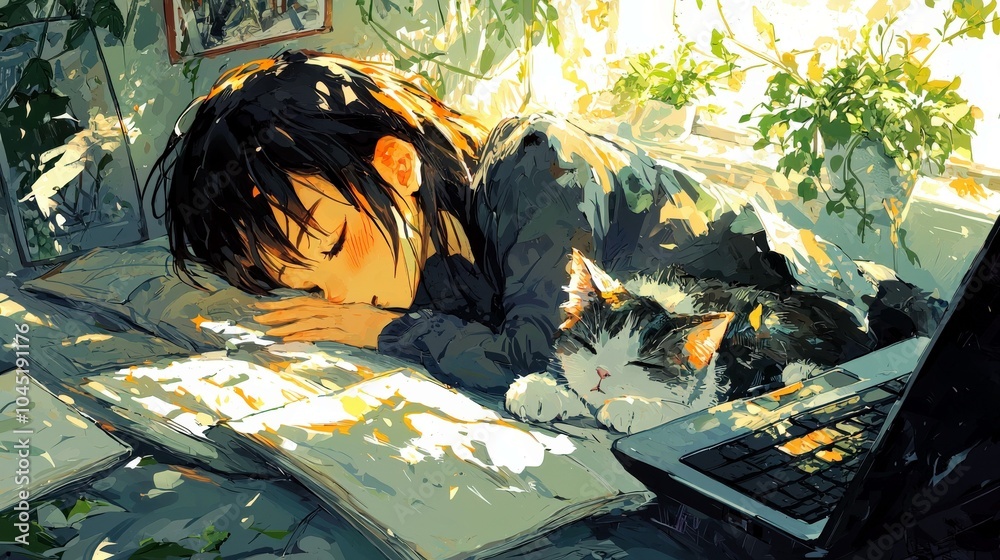 Plakat - Vibrant Anime Teen in Eclectic Study Environment.