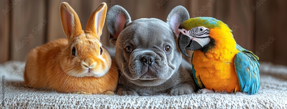 Plakat - A banner design for your home or businessCute pets gathered on a white backdrop.
