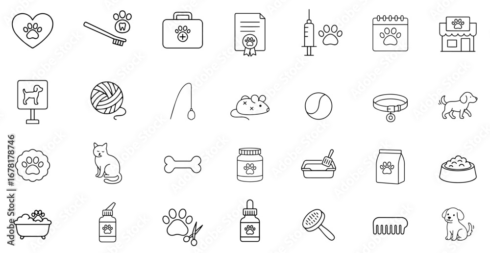 Plakat - Set of pet icons, dog, cat, puppy, animals.
