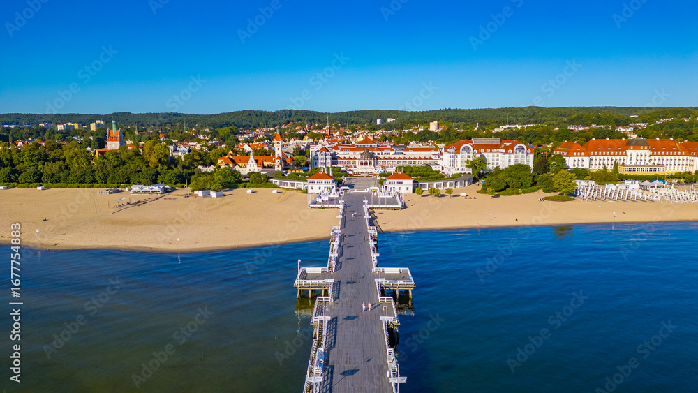Plakat - Panorama view of spa house at the end of pier in Sopot, Poland.
