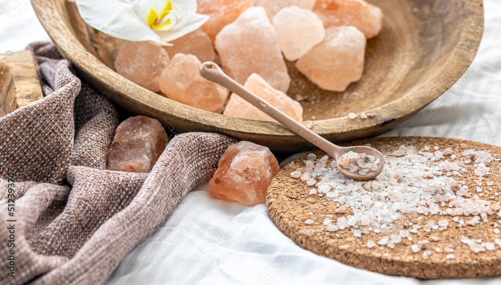 Plakat - Spa composition with sea salt and orchid flowers..