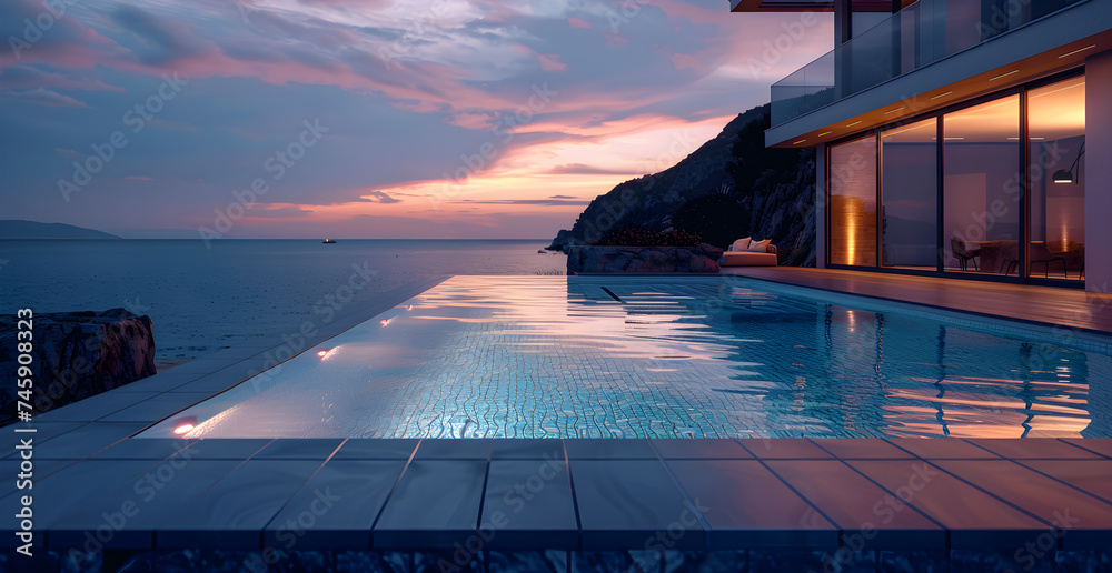 Plakat - photo of Swimming pool in a luxury modern hotel by the sea.