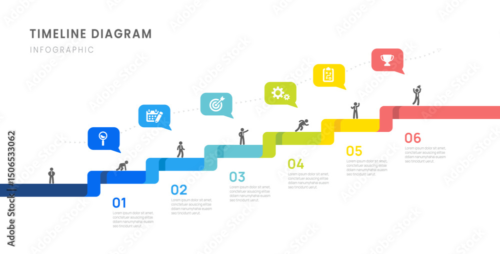 Plakat - Business road map timeline infographic with 6 options milestones elements, diagram, arrow, and icon, vector..