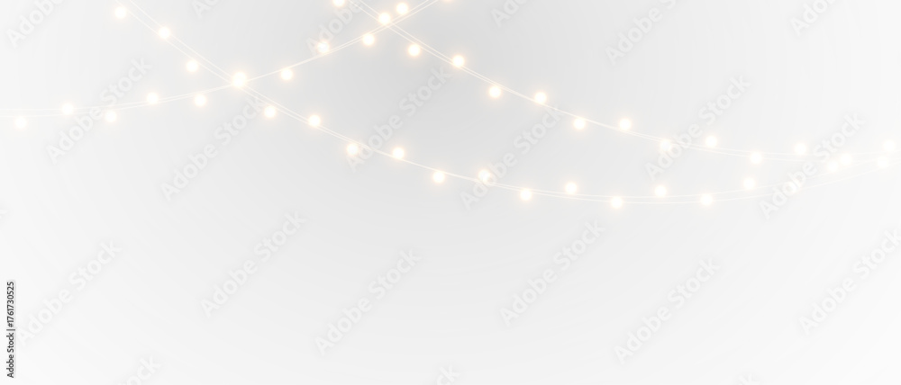 Plakat - Seamless decorative Christmas border with conifer branches and lights overlay background.