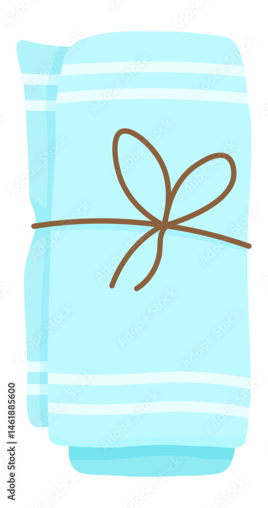 Plakat - Soft light blue towel folded and tied with brown string, isolated on a white background, creating a clean and simple image perfect for hygiene, spa, and relaxation concepts.