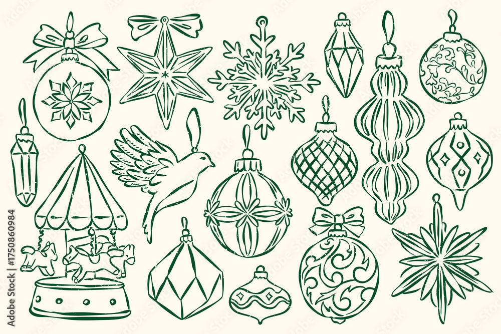 Plakat - Christmas ornament doodles collection. Art for greeting cards, wedding invitations, poster design, postcards, branding, logo design, background..