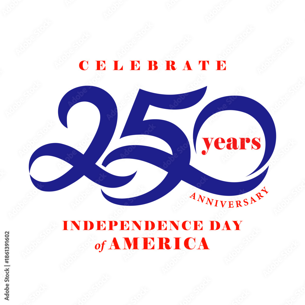 Plakat - Celebrate 250 years anniversary USA, creative calligraphy logo. Independence America holiday, 250th years - vector design for poster or banner.
