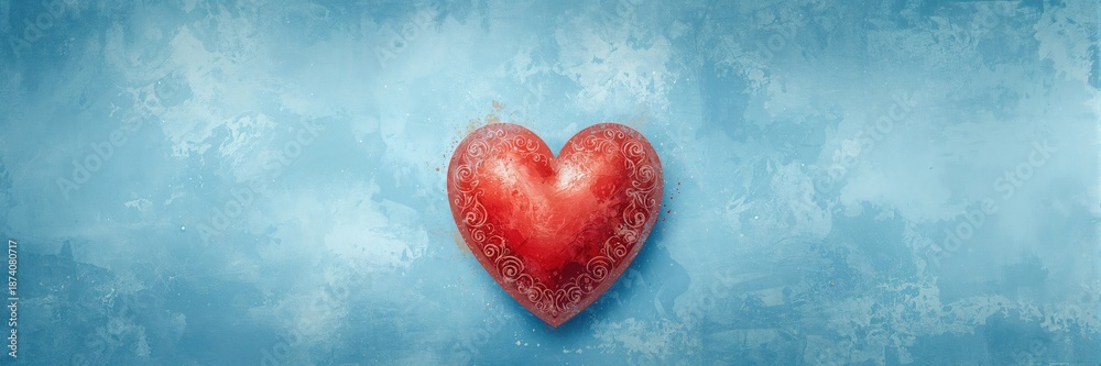 Plakat - Blue painted heart on a solid background used as a UI backdrop for emotional messaging or layout design.