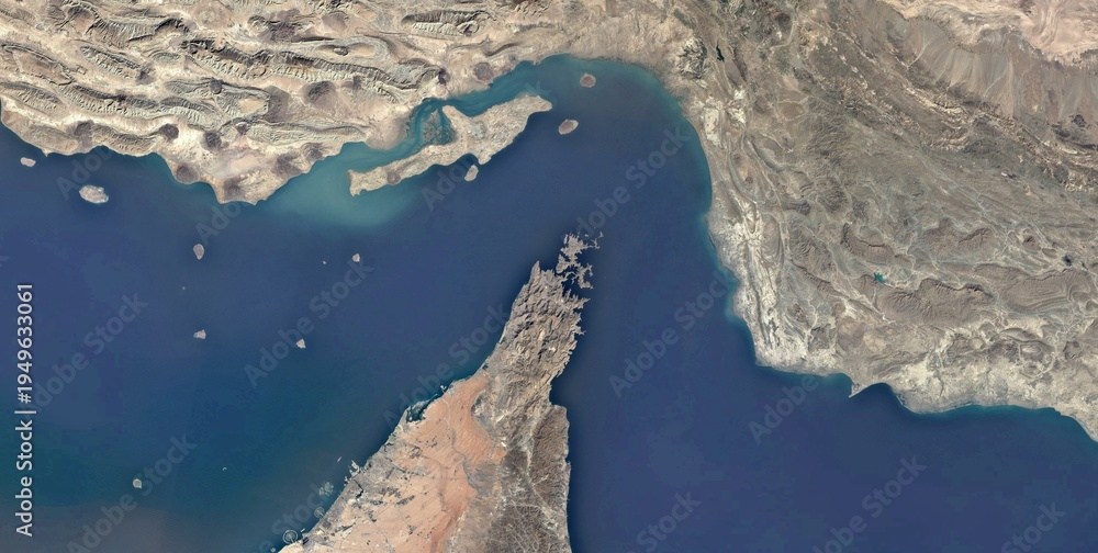 Plakat - Aerial View of Strait of Hormuz Coastline, Iran.