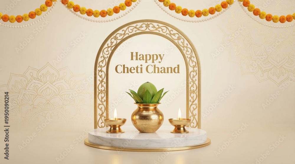 Plakat - Cheti Chand Festival Banner With Golden Kalash.