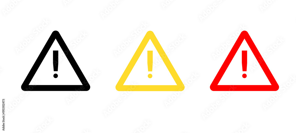 Plakat - set of warning sign triangle. Black yellow and red danger alert risk caution icon png file type.