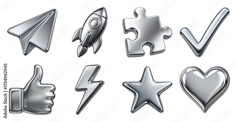 Plakat - Metallic icons representing various concepts..