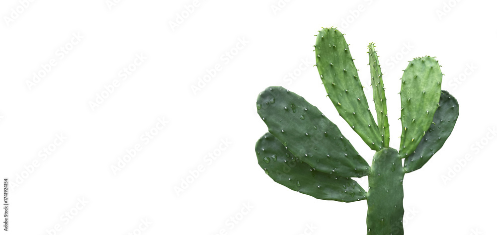 Plakat - Opuntia cactus isolated on transparent background with copy space.