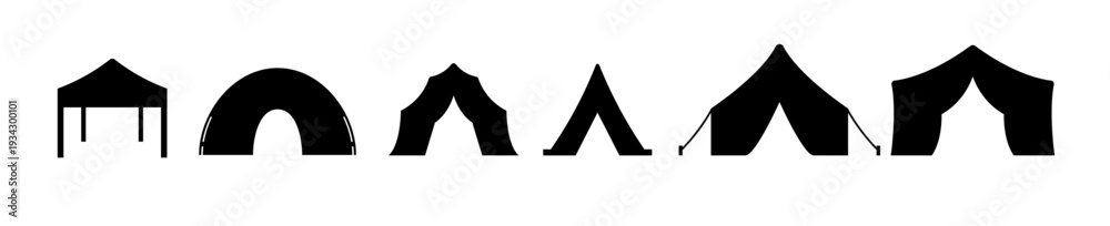 Plakat - Camping tent shelter canopy pavilion marquee gazebo silhouette icon set black isolated outdoor adventure tent icon set..
