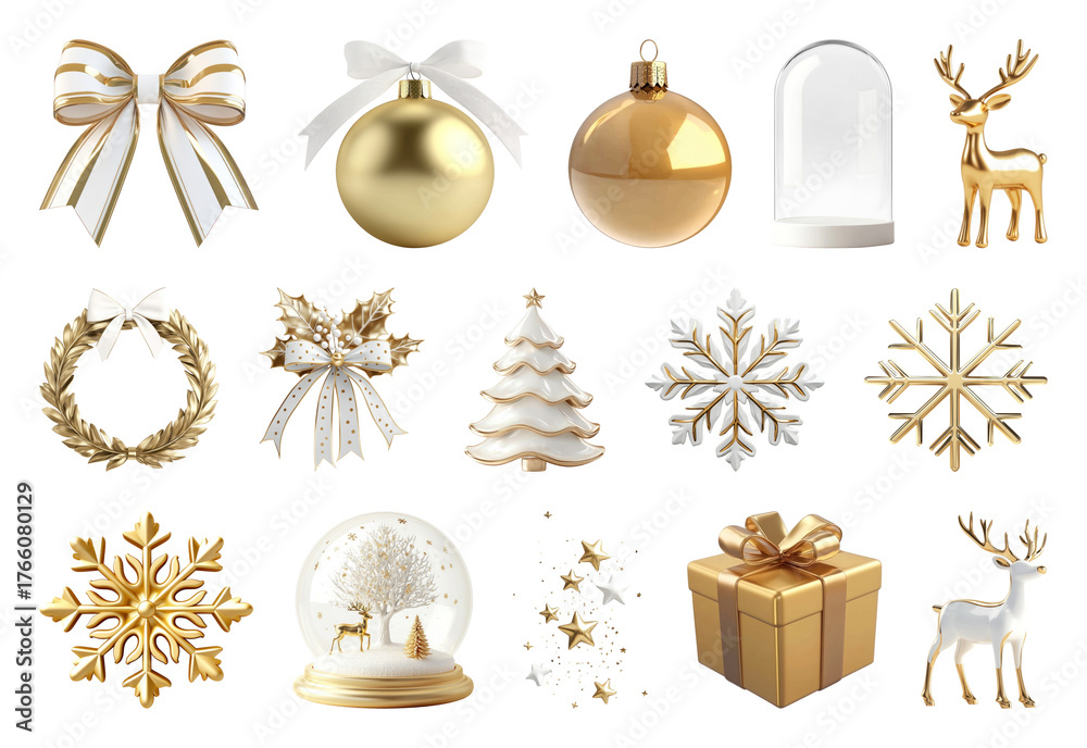 Plakat - PNG Elegant festive gold Christmas decorations, element set on transparent background.