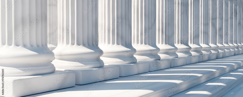 Plakat - Classical columns and stairs, marble pillars row, stone colonnade building facade detail,.