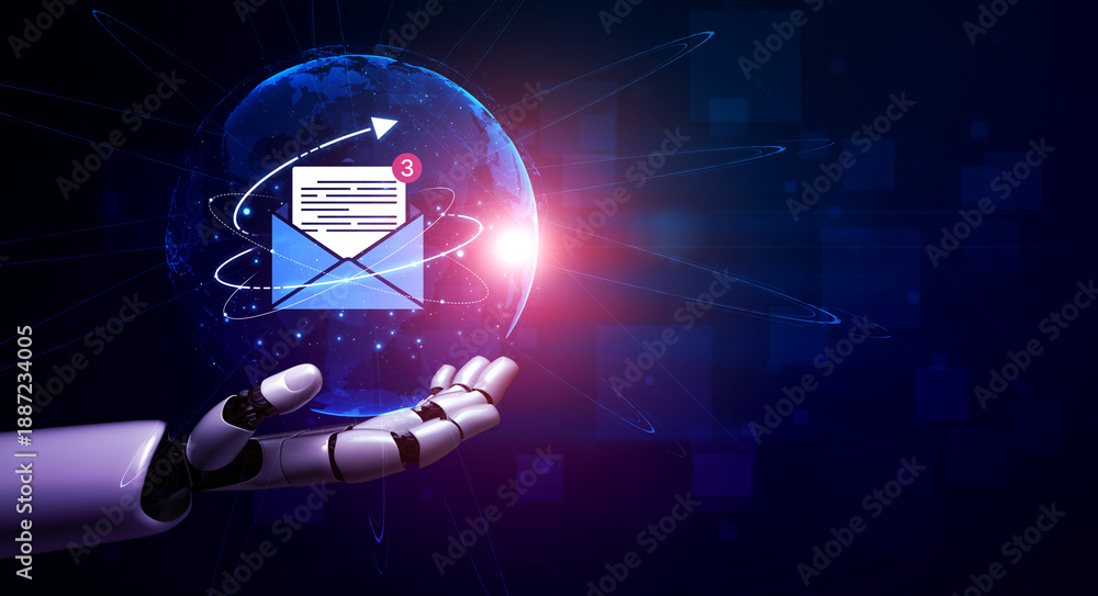 Plakat - An AI assistant manages an email inbox, prioritizing new messages and notifications. This automated communication system streamlines digital correspondence and information flow. Fermion.