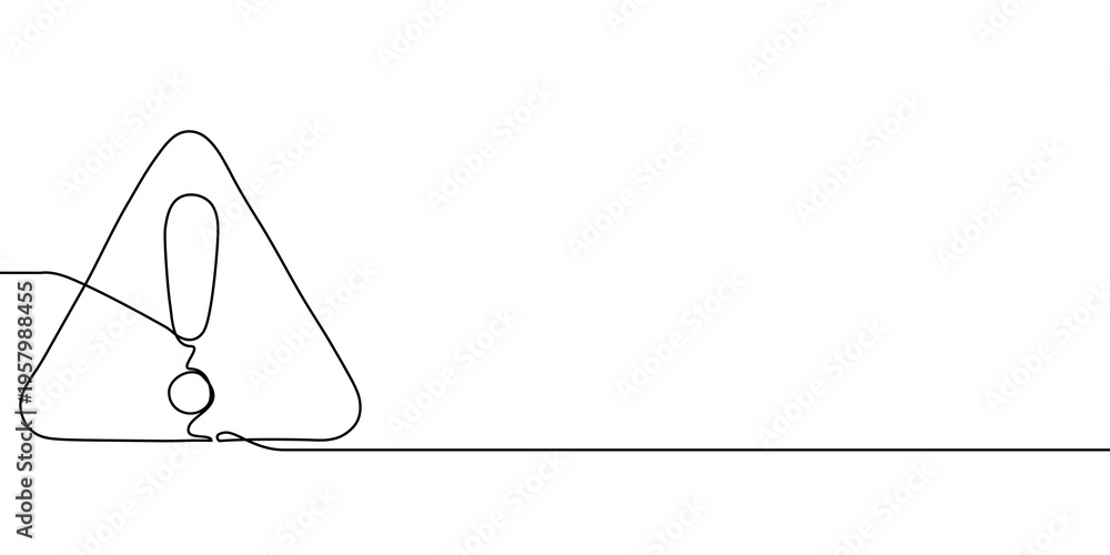 >Plakaty>Wybrane motywy - zobacz więcej !>Lawendowe pole>Continuous one line exclamation caution stop sign attention danger alert mark icon. Exclamation hazard one line point risk safety illustration important road triangle mistake error outline alarm mark.