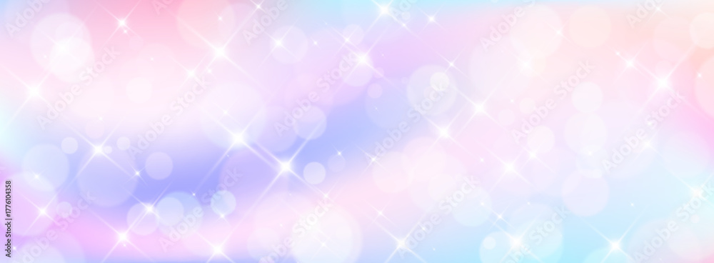 >Plakaty>Wybrane motywy - zobacz więcej !>Liście>Sparkling magic unicorn background with shimmering sparkles. Vector realistic illustration of pastel pink and blue color gradient, abstract heavenly clouds, fantasy backdrop for fairytale design