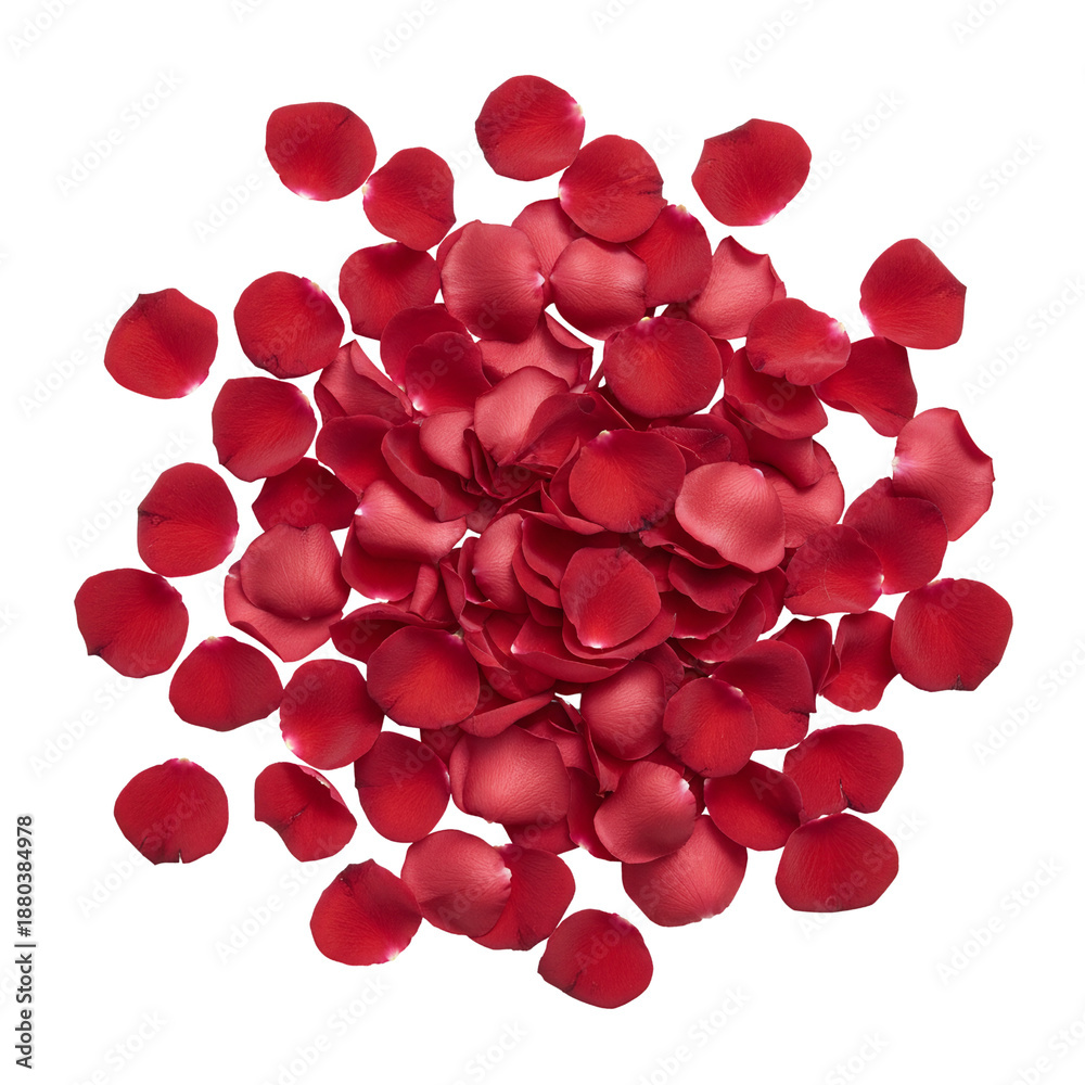 Plakat - Pile of fresh red rose petals on gray background.
