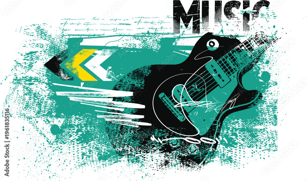 Plakat - music, grunge illustration design, Guitar silhouette illustration grunge texture, typography street art graffiti, guitar symbolic image graffiti style, street art graffiti vector for graphic tees.