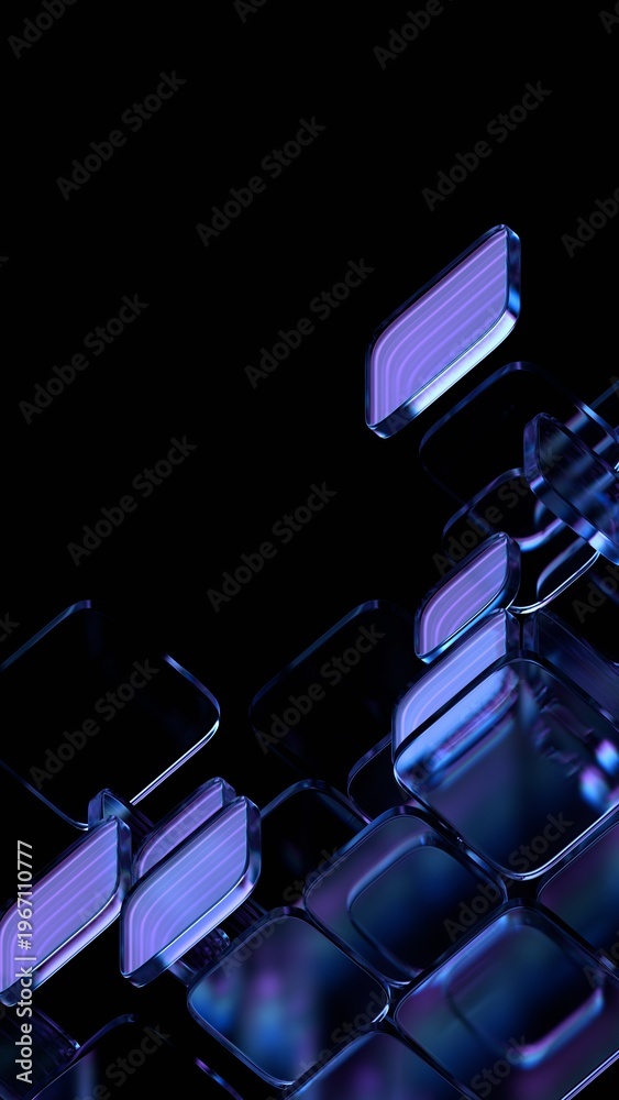Plakat - Abstract purple glass blocks on a black background, vertical 3d render.