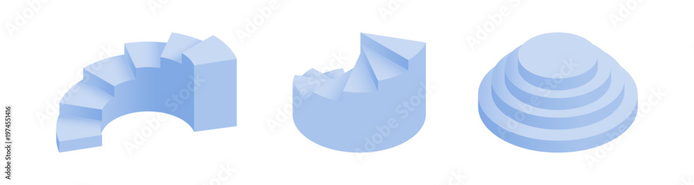 Plakat - Spiral and circular stairs. Vector isometric steps set,isometric connectors between floors, linking platforms and levels. Architectural creativity and interior functionality. Planning visualization.