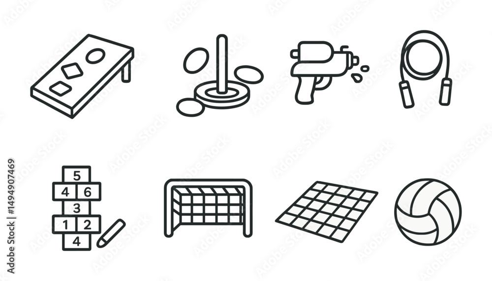 Plakat - Outdoor and backyard games outline icons set – flat, line, leisure and fun symbols.