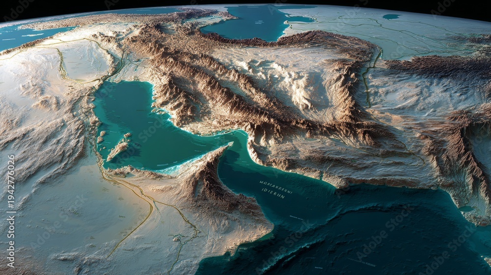 Plakat - Critical maritime gateway: the geography of the hormuz strait. Branding asset. Comprehensive overview: the strategic passage of hormuz. Modern design. Commercial image..