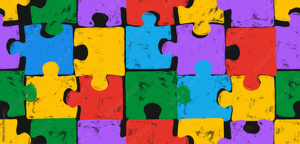 >Plakaty>Wybrane motywy - zobacz więcej !>Motyle>Seamless pattern colorful jigsaw puzzle piece. Fun children education game background concept. Autism awareness print, school learning wallpaper texture. Medical flat illustration. Vector health care.