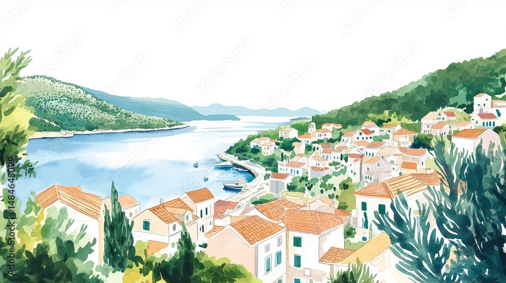 Plakat - Hvar. Hvar hand drawn watercolor illustration.