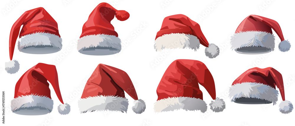 Plakat - set of santa claus christmas hat isolated vector graphic design.