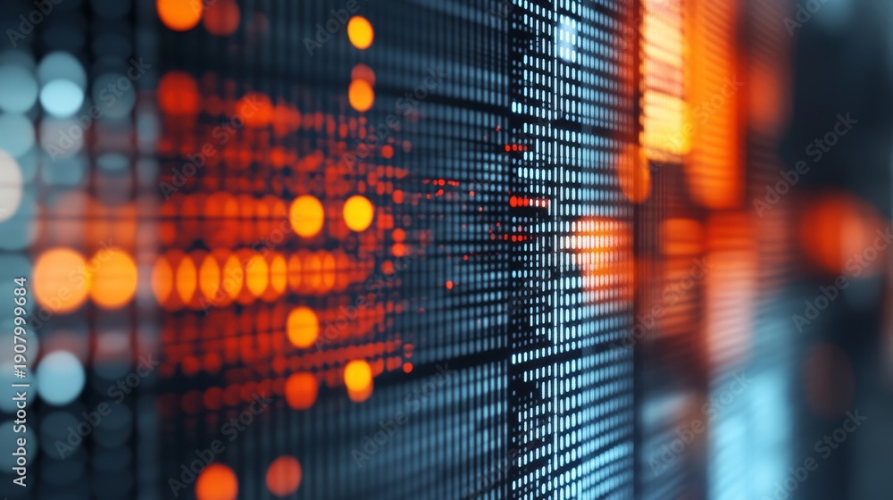 Plakat - Abstract digital data stream visualized with glowing orange lights and intricate patterns..