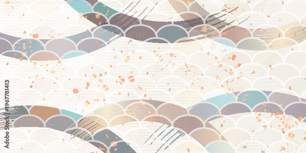 Plakat - Elegant Japanese Pattern Featuring Waves and Traditional Gold Accents.