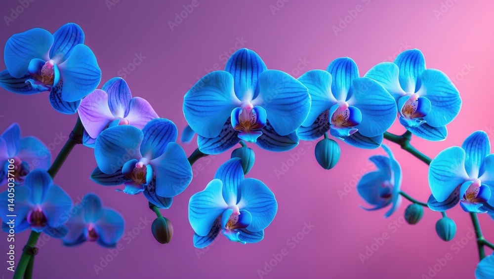 Plakat - Stunning blue orchid blossom against a pink backdrop, close-up.