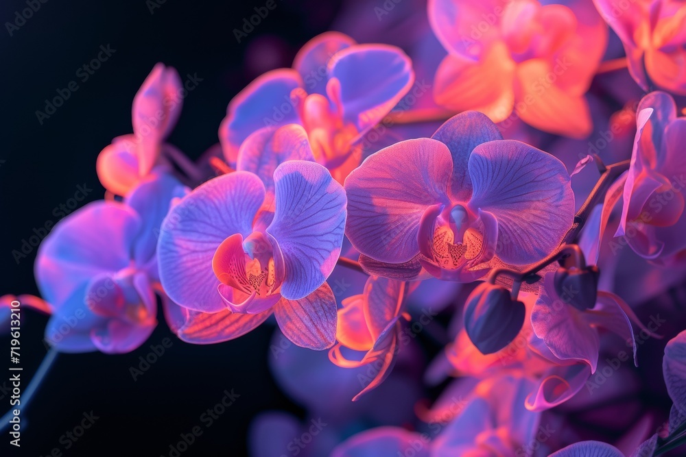 Plakat - purple and pink orchids against a dark background.