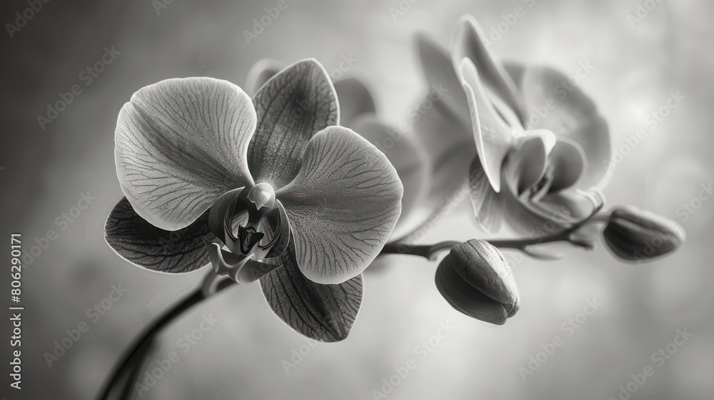 Plakat - Captivating orchids in strong contrast black and white, focusing on the beauty and form of the flowers.