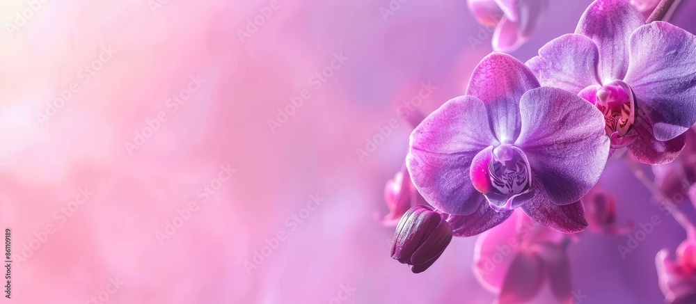 Plakat - beautiful purple orchid flower (Orchidaceae) pastel background. Copy space image. Place for adding text and design.