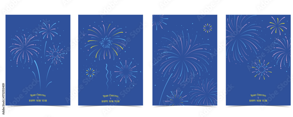 Plakat - Happy new year festival with yellow firework on dark background for invitation card.