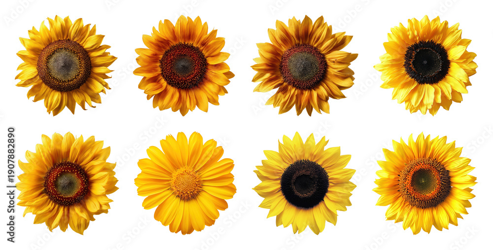 Plakat - PNG Vibrant sunflowers isolated collection on transparent background.