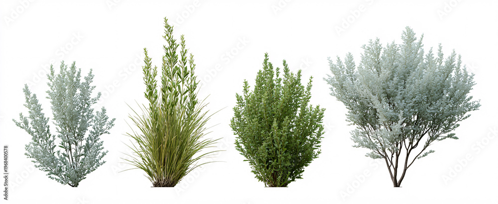 Plakat - Atriplex canescens and Calligonum comosum set against a white background in bright light..