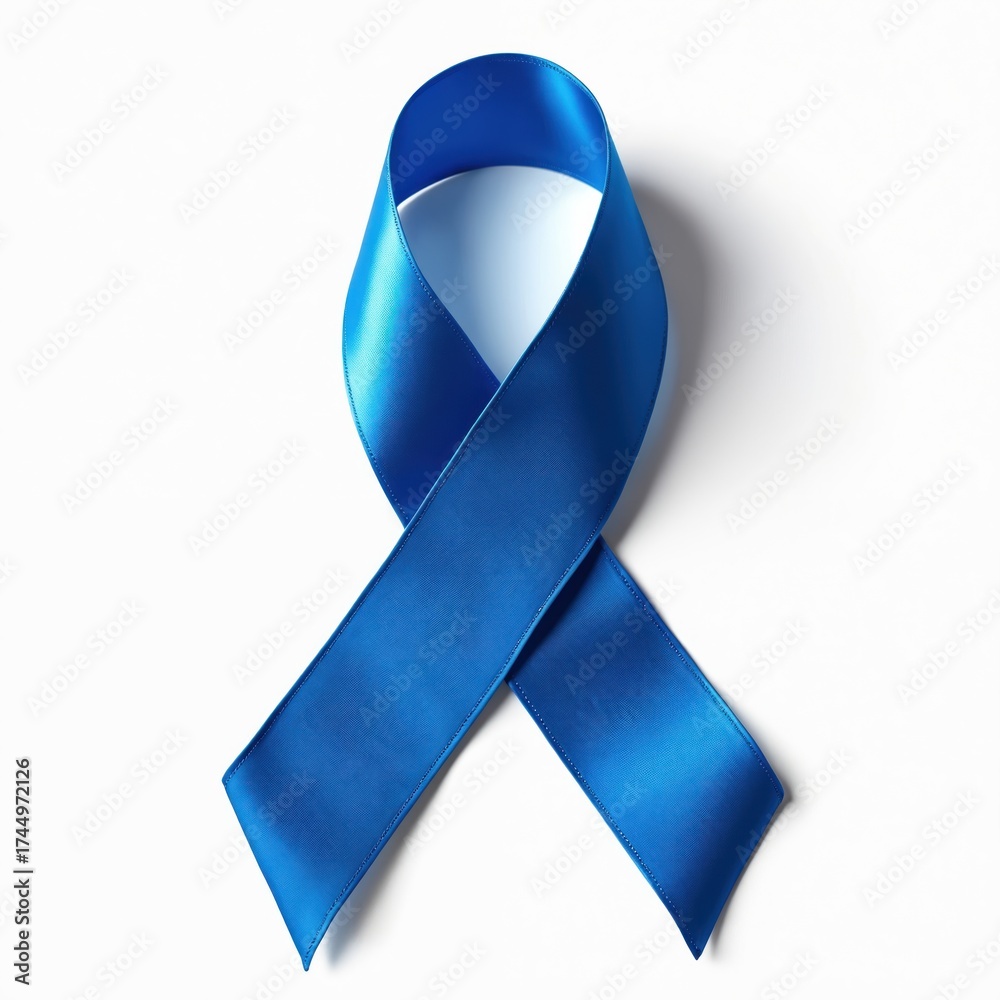 >Plakaty>Wybrane motywy - zobacz więcej !>Piłka nożna>Blue ribbon on white background. Symbol for prostate cancer awareness. Support and care for patients with prostate disease. Blue awareness ribbon for health campaign.
