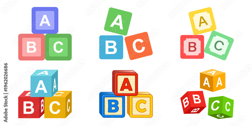 >Plakaty>Wybrane motywy - zobacz więcej !>Pod palmami>Hand holding alphabet ABC blocks icon set collection in flat style. Child education vector illustration on isolated background. Elementary school sign set collection business concept.